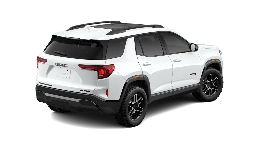 Summit White 2026 GMC Terrain AT4 AWD 8-Speed Automatic with Overdrive 1.5L DOHC 2-Way Power Driver Lumbar Seat Adjuster, 3 Years SiriusXM, 3.47 Final Drive Axle Ratio, 4-Wheel Disc Brakes, 6 Speakers, 6-Speaker Audio System Feature, 8-Way Power Driver Seat Adjuster, ABS brakes, Air Conditioning, All-Weather Cargo Mat, Alloy wheels, AM/FM radio: SiriusXM, Auto High-beam Headlights, Automatic temperature control, Black Badging Package, Black Nameplate Kit, Brake assist, Bumpers: body-color, Cloth/Core Tec Seat Trim, Compass, Delay-off headlights, Driver and Front Passenger Heated Seats, Driver door bin, Driver vanity mirror, Dual front impact airbags, Dual front side impact airbags, Electronic Stability Control, Emergency communication system: OnStar and GMC connected services capable, Floor Liner Package, Four wheel independent suspension, Front All-Weather Floor Liners, Front and Rear Black GMC Emblems, Front anti-roll bar, Front Bucket Seats, Front Center Armrest, Front dual zone A/C, Front fog lights, Front Passenger 4-Way Manual Seat Adjuster, Front reading lights, Fully automatic headlights, Garage door transmitter, Heated door mirrors, Heated front seats, Heated steering wheel, Illuminated entry, License Plate Front Mounting Package, Low tire pressure warning, Navigation System, Occupant sensing airbag, Outside temperature display, Overhead airbag, Overhead console, Panic alarm, Panoramic Power Sunroof with Sunshade, Passenger door bin, Passenger vanity mirror, Power door mirrors, Power driver seat, Power Liftgate, Power steering, Power windows, Preferred Equipment Group 4SB, Radio data system, Radio: Premium GMC Infotainment System, Rain sensing wipers, Rear air conditioning, Rear anti-roll bar, Rear seat center armrest, Rear window defroster, Rear window wiper, Remote keyless entry, Second Row All-Weather Mat, Security system, SiriusXM with 360L Trial Subscription, Speed control, Speed-sensing steering, Split folding rear seat, Spoiler, Sport steering wheel, Steering wheel mounted audio controls, Tachometer, Telescoping steering wheel, Tilt steering wheel, Traction control, Trip computer, Variably intermittent wipers, Wheels: 17 Dark Machined Aluminum, Wireless Apple CarPlay/Wireless Android Auto.